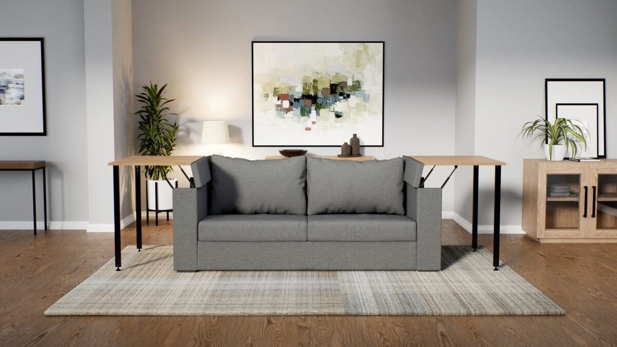 A DESK when you need it a SOFA when you don't! Who knew you can have the best of wfh in one furniture! This desk will let you use efficiently all your space as it gets stored in the armrest when you're not working.